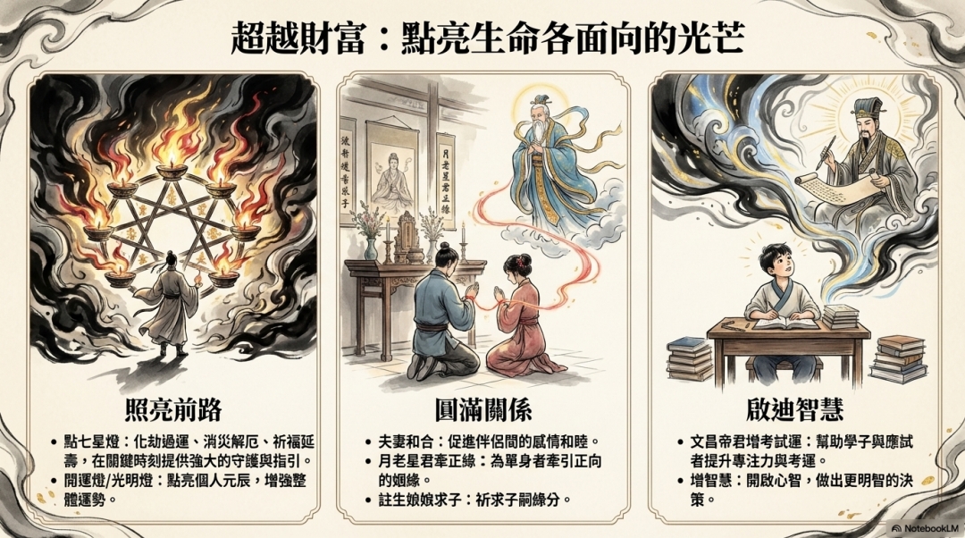 *祈福延壽:點亮元辰, 增強生命力與運勢。