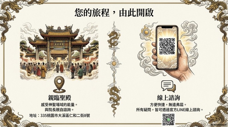 感受神聖場域的能量。 與院長親自諮詢。